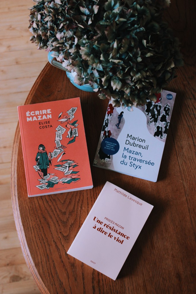 • Procès Mazan, une résistance à dire le viol. Mathilde Levesque. Editions Payot (maison d’édition appartenant au groupe Actes Sud). 2025, 175p.