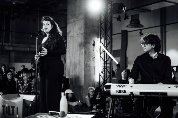 Dans le cadre du festival Dangereuses Lectrices que j’ai la joie et l’honneur de co-organiser depuis moult années avec les personnes les plus formidables, l’une de mes copines a décidé d’insister (et à raison) afin que le samedi soir soit programmée Klaire fait Grr. Klaire fait des chansons pas chantées (ce qui, tant qu’on ne l’a pas écoutée peut sembler étonnant) et est très féministe, ce qui ne gâche rien. Son nouveau spectacle (concert ?) nous a fait rire et pleurer, elle a une diction incroyable qui donne à ses textes très riches une puissance fabuleuse. Elle nous prouve que l’on peut écrire et rire de tout, que tout est sujet à chanson. D’un bout à l’autre des émotions (La petite chanson, par exemple, extraite de son précédent spectacle, ou bien Lève-toi et marche). Klaire est follement sympathique, sa présence sur scène est hypnotisante. Il y a ses chansons pas chantées, il y a ses intermèdes. Vous pouvez trouver son précédent spectacle sur Youtube, et c’est assez délicieux, bien qu’encore mieux en vrai, pour l’ambiance et les rires. Et n’hésitez pas à solliciter vos salles de spectacles locales pour la programmer.